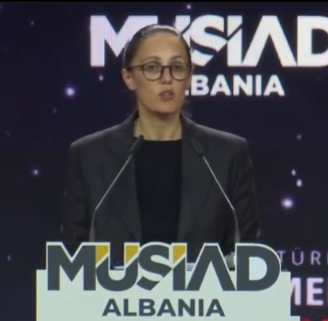 Arnavutluk Maliye ve Ekonomi Bakanı Delina Ibrahimaj, konuşmasında iki ülke arasındaki ticaretin ekonomik bir köprü oluşturduğunu vurguladı.
